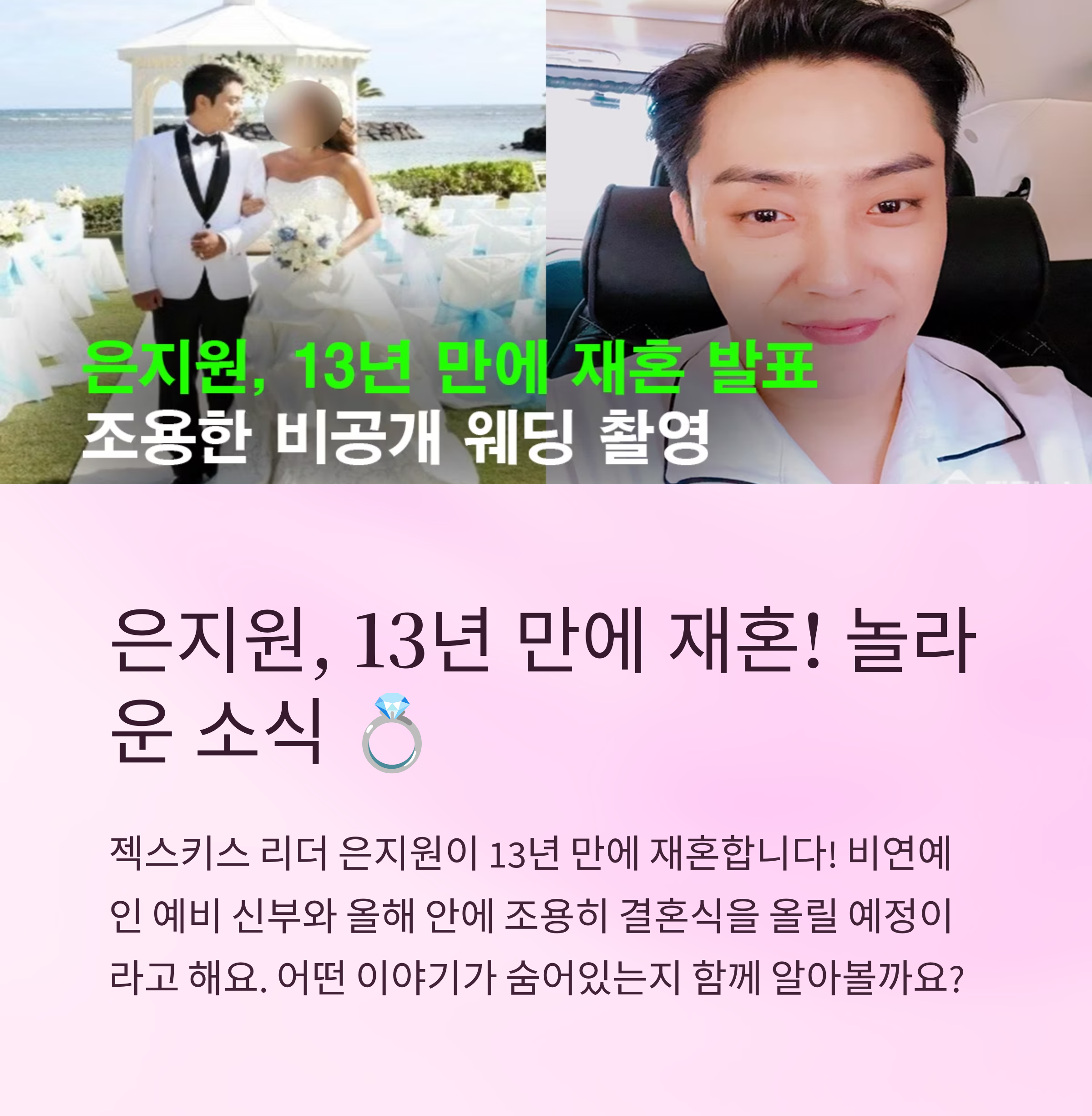은지원, 13년 만의 재혼! 대체 누가 그의 마음을 사로잡았을까? 🤔