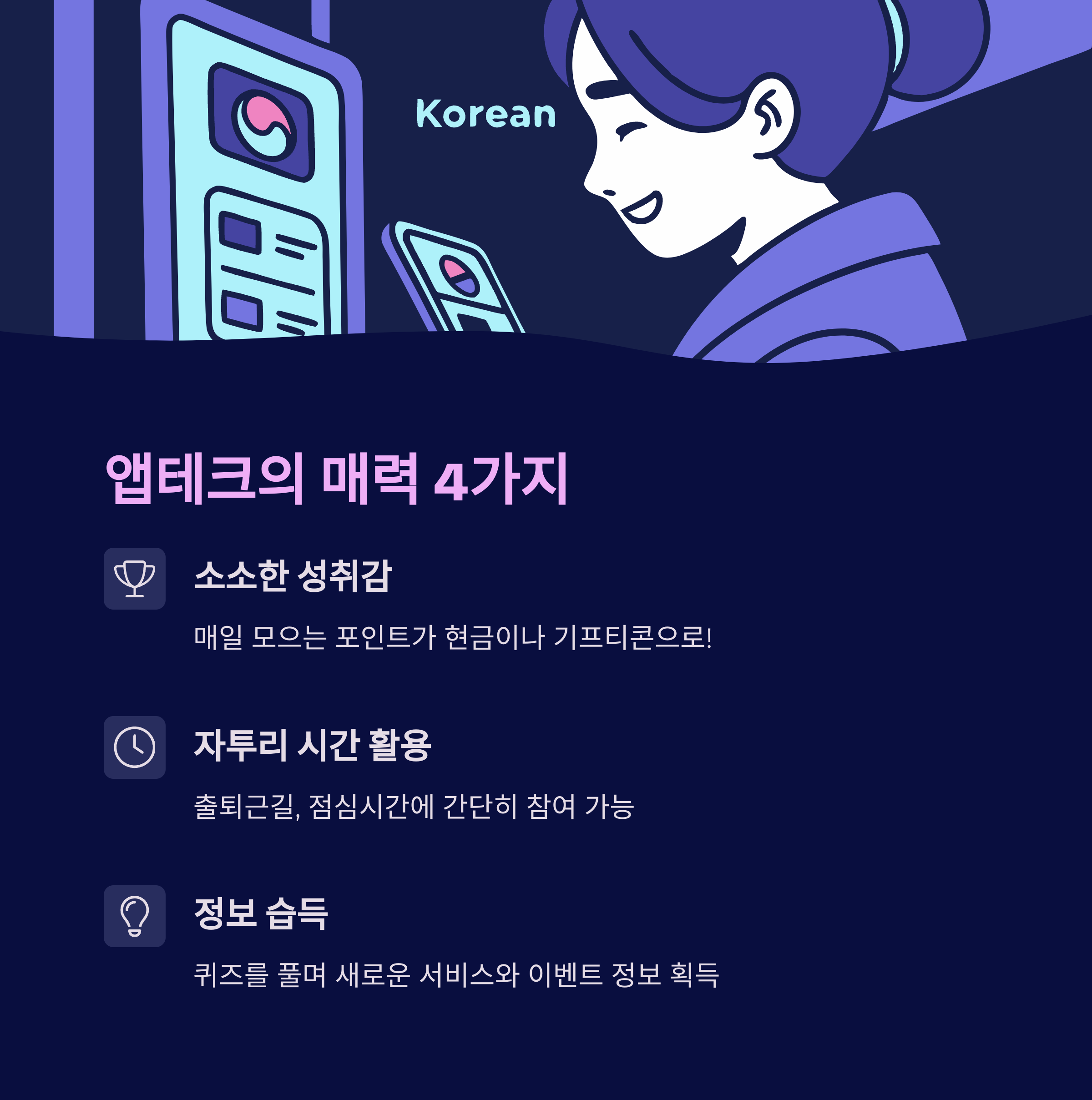 - 앱테크의 매력: 소소한 성취감, 자투리 시간 활용, 정보 습득, 부담 없는 재테크가 가능합니다.