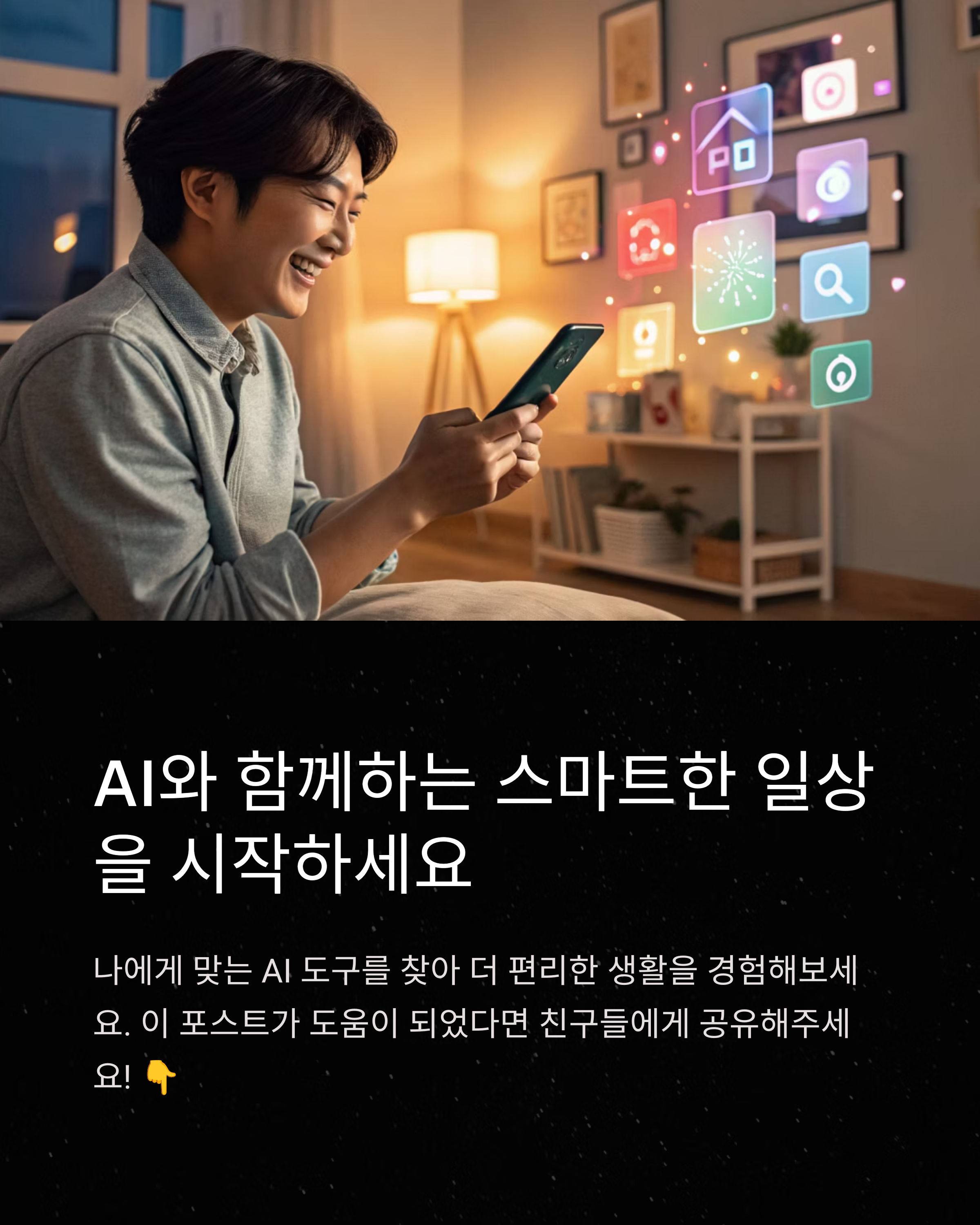 AI는 단순한 기술을 넘어서 우리 삶의 방식 자체를 바꾸고 있어요. 알람, 집안일, 건강, 업무, 심지어 여가 시간까지—지금 우리가 누리고 있는 많은 편리함은 AI 덕분이죠. 중요한 건 그 흐름에 뒤처지지 않고, 적극적으로 활용하고 받아들이는 자세 아닐까요?