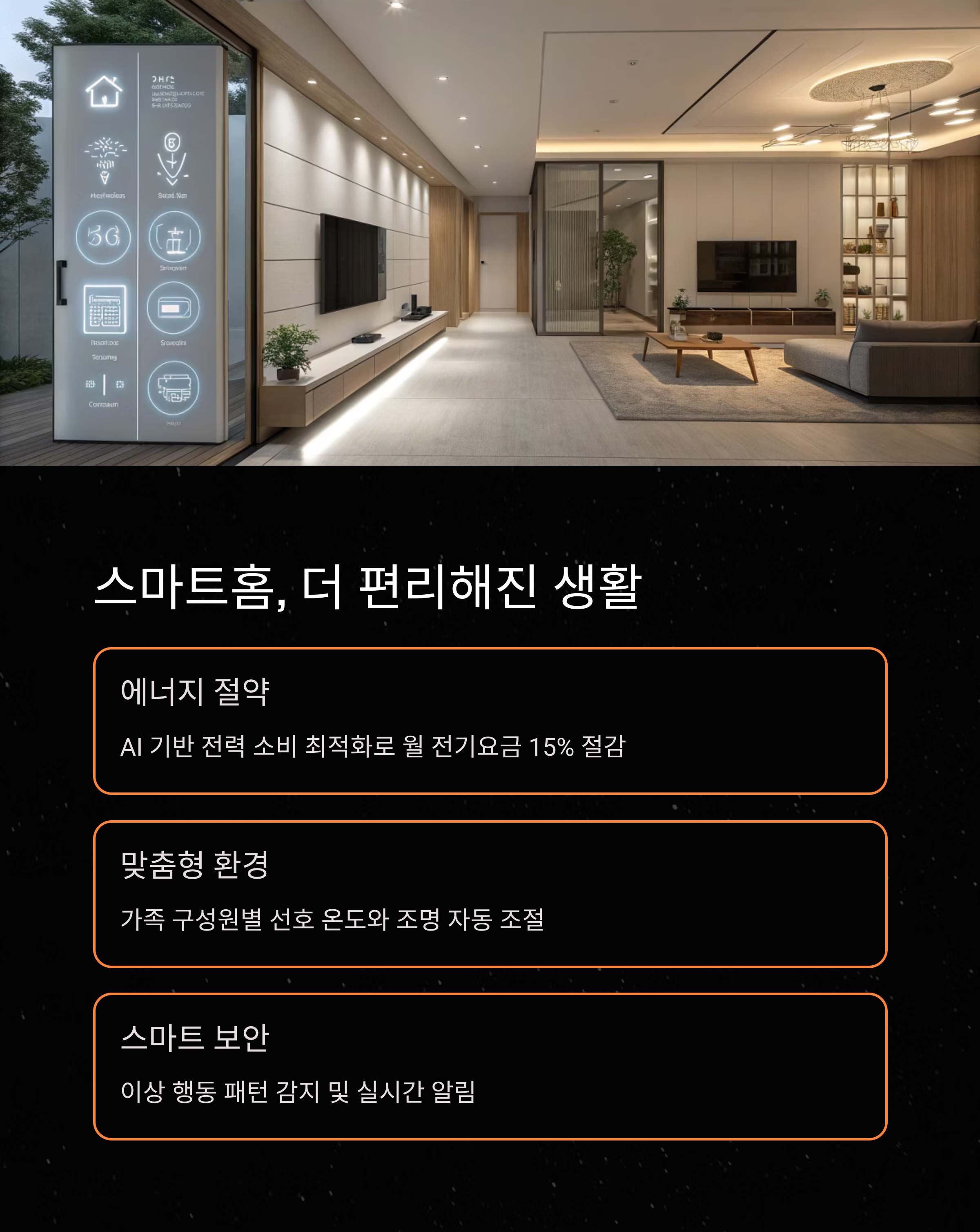 Wi-Fi 기반 IoT 기기들이 AI 허브나 앱과 연동되어 사용자의 생활 패턴에 맞춰 자동으로 작동합니다.