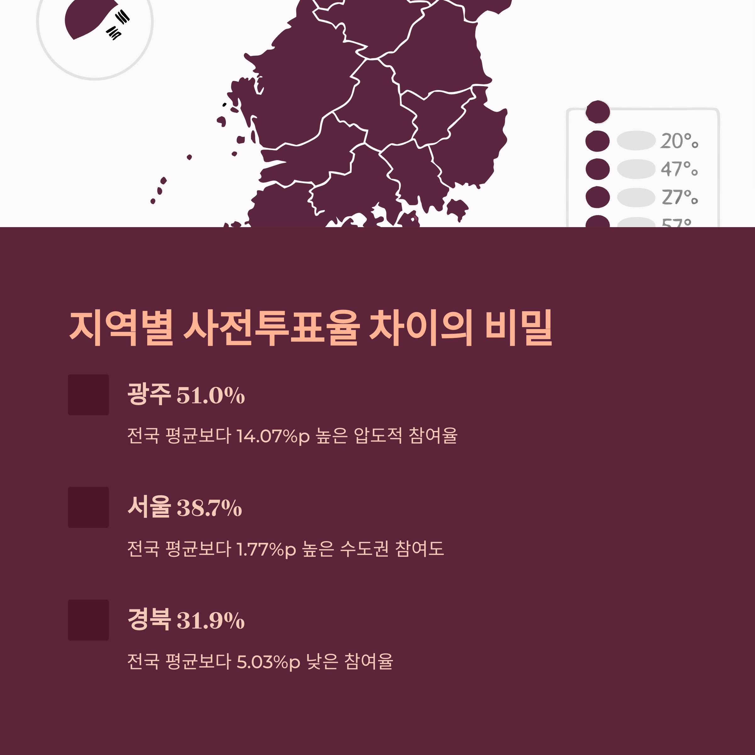 광주 51.0%, 서울 38.7%... 같은 나라, 다른 사전투표율. 이 차이, 단순한 우연일까요?