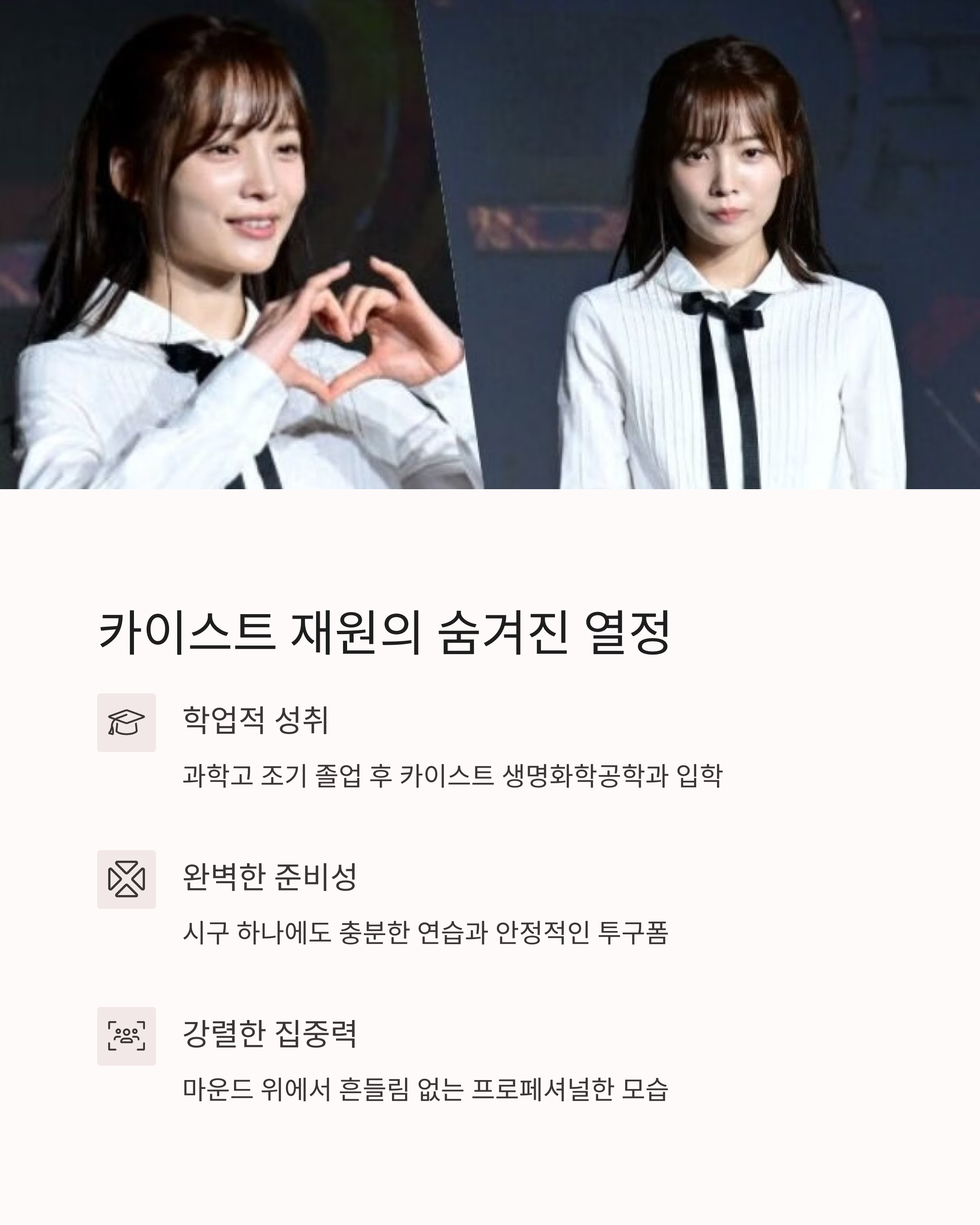 - 반전 매력 발견: 차분한 이미지 뒤에 숨겨진 승부욕과 외유내강의 면모가 드러났죠.