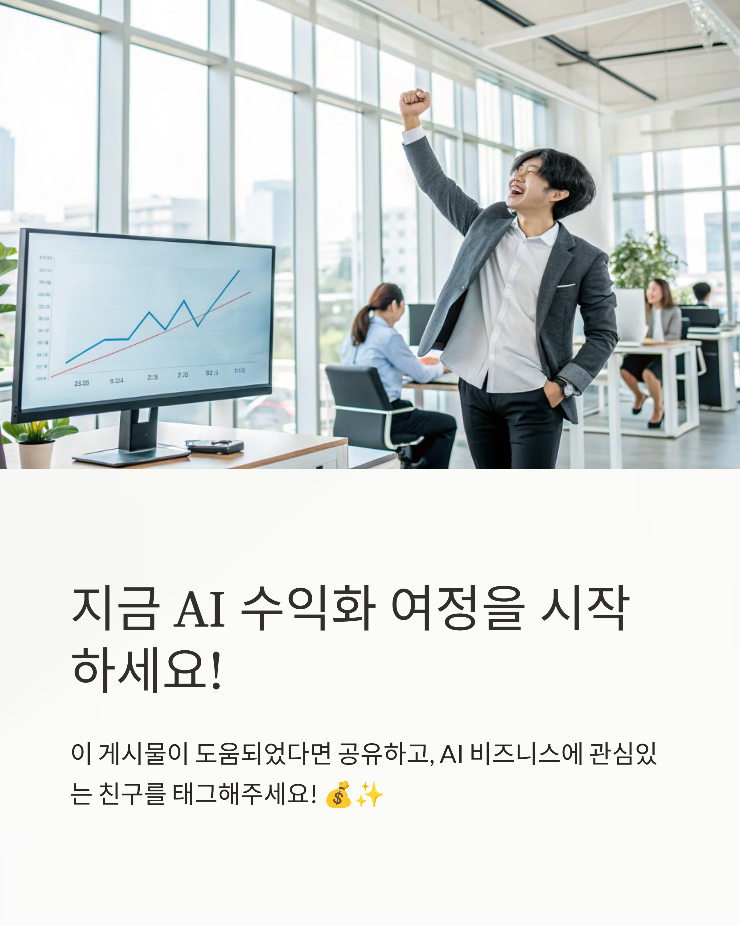 오늘이 AI 수익화의 첫날이 될 수 있습니다. 아래 댓글에 여러분의 계획을 남겨보세요! 그리고 이 글이 도움이 됐다면 공유 부탁드려요 😊
